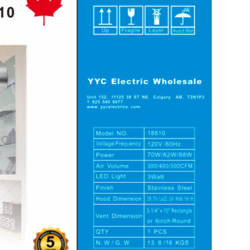 Range Hood, 3-Speed w/ buttons, 300/400/500 CFM Round Vent (LYD-18810) (50063)