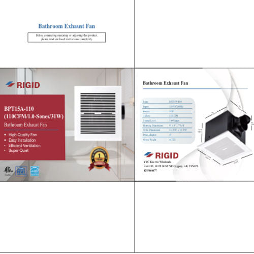 Increase quantity for RIGID Bath Fan 110CFM (10110) (50061)